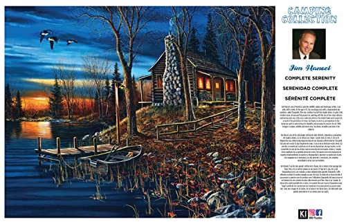 Details: Brilliantly colored 1000 piece jigsaw puzzle of a charming camping scene "Complete Serenity" by renown artist Jim Hansel. The interlocking jigsaw puzzle is made from quality, thick recycled paper board and 27x20” when completed. It is packed in a sealed plastic bag with very low puzzle dust. A full color poster sheet for each image is included for easy reference as you relax, kick back and enjoy mentally challenging yourself while you assemble this colorful puzzle! About the artist: Jim Hansel, one of America’s premier wildlife, nature and landscape artists, is an artist with a twist. At the age of 12, Jim was diagnosed with a degenerative eye condition called Stargardts. This eye condition has left him legally blind. In spite of his limited vision, he pursued his passion for painting with the use of low vision devices and has become one of the most collected artists in the United States and Canada. As a result of his partial loss of vision, Jim hopes to serve as an inspiration to the American spirit in overcoming his disability and pursuing his passion for art. With images in nature, wildlife and Americana, Jim shows versatility and love of his subjects.