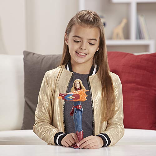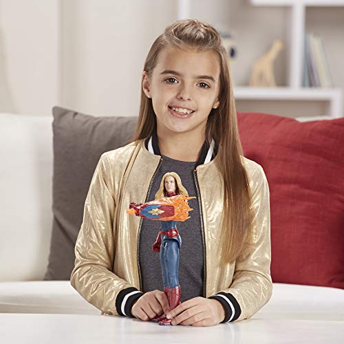 Details: Avengers, assemble! Carol Danvers suits up as Captain Marvel in the battle for Justice. Imagine the pilot-turned-super hero fighting for what’s right with the 12-inch-scale Titan hero power FX Captain Marvel figure, inspired by the Avengers: Endgame movie. This figure includes a Titan hero power FX launcher to attach to the arm port so when kids connect the launcher, they can power up their figure, activate character-specific sounds and phrases from the Avengers: Endgame movie, and launch a projectile! Connect Titan hero power FX arm launcher to compatible Titan hero series figures to activate character-specific sounds and phrases in favorite super hero and villain figures and launch projectiles! Titan hero power FX arm launcher sold with this and other Titan hero power FX figures. Each sold separately. Subject to availability. Copyright 2018 Marvel. Hasbro and all related terms are trademarks of Hasbro.