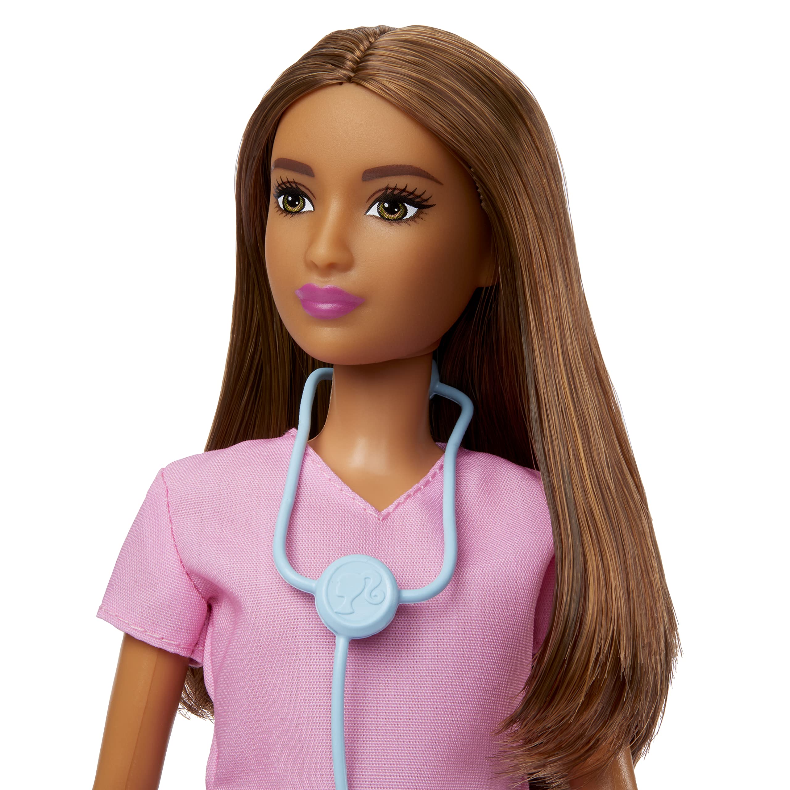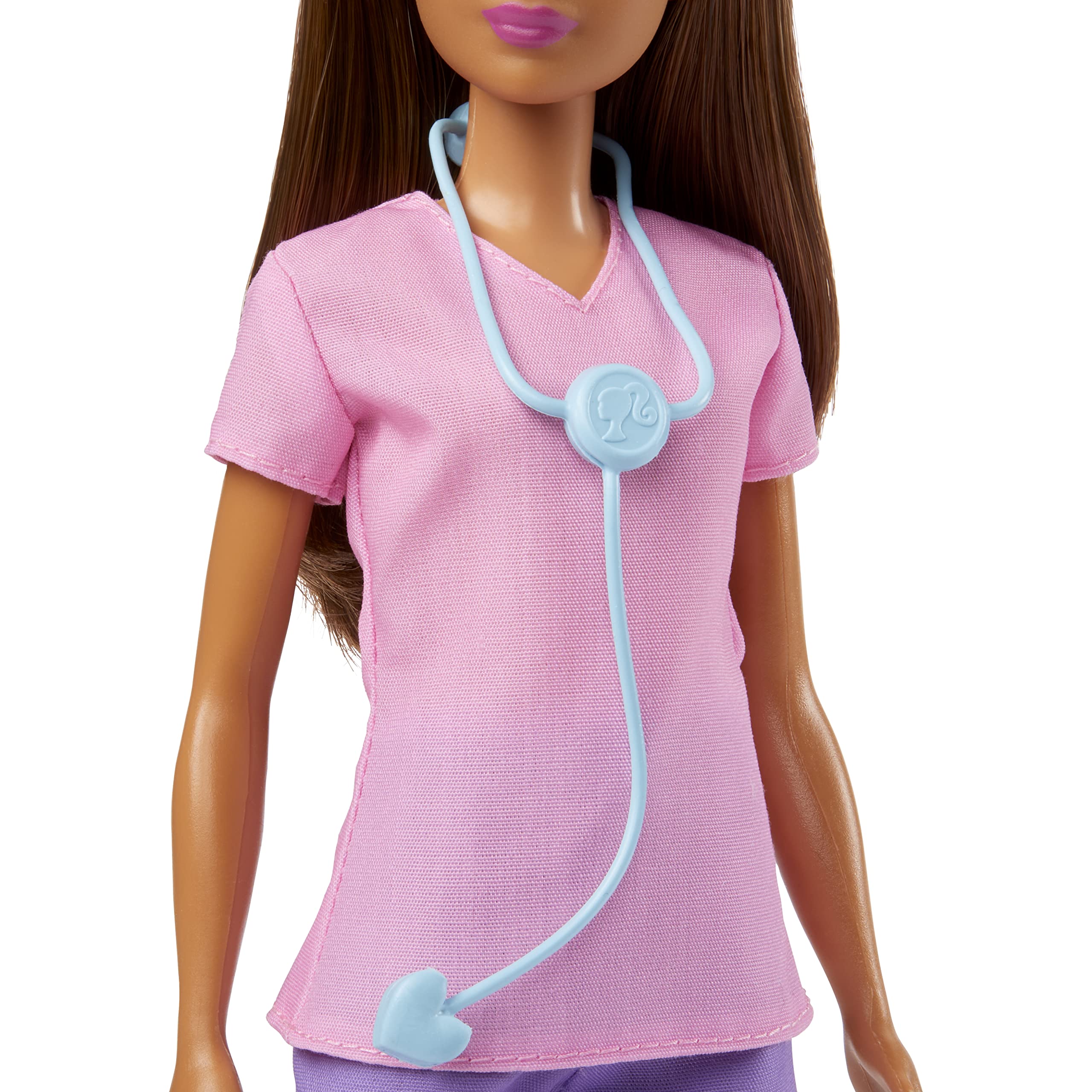 Details: Barbie Professional Doctor Fashion Doll with Pink Top & Purple Pants, White Shoes & Stethoscope Accessory