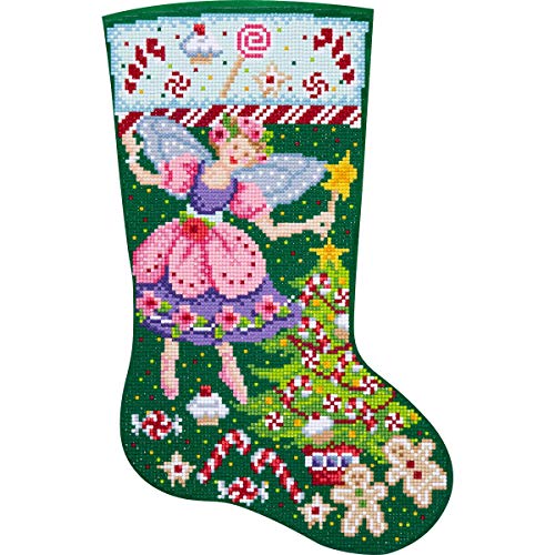 Details: The Bucilla Gem Dots Sugarplum Fairy Stocking is a twist on the classic Bucilla stocking you know and love. This beautiful and shimmering design features a colorful sugarplum fairy sprinkling candy and sweet treats around the Christmas tree. Simply lay out the printed canvas and pick a single gem color to start. Apply a tiny bit of wax to the tip of the gem pen tool and then press the pen tool on the rounded size of the dot. Attach the dot by pressing firmly onto the adhesive fabric covering the symbol. This kit comes with 4 color printed fabric with adhesive, gem dots, gem pen tool, tray, wax, felt, floss, needle, and instructions. Additionally, this kit includes enough felt to create the backing, hangtag, and name tag to finish your sparkling stocking. Make together as a family or give as a gift this holiday to bring cheer into someone's life with the Bucilla Gem Dots Sugarplum Fairy Stocking. 89320E, 18"
