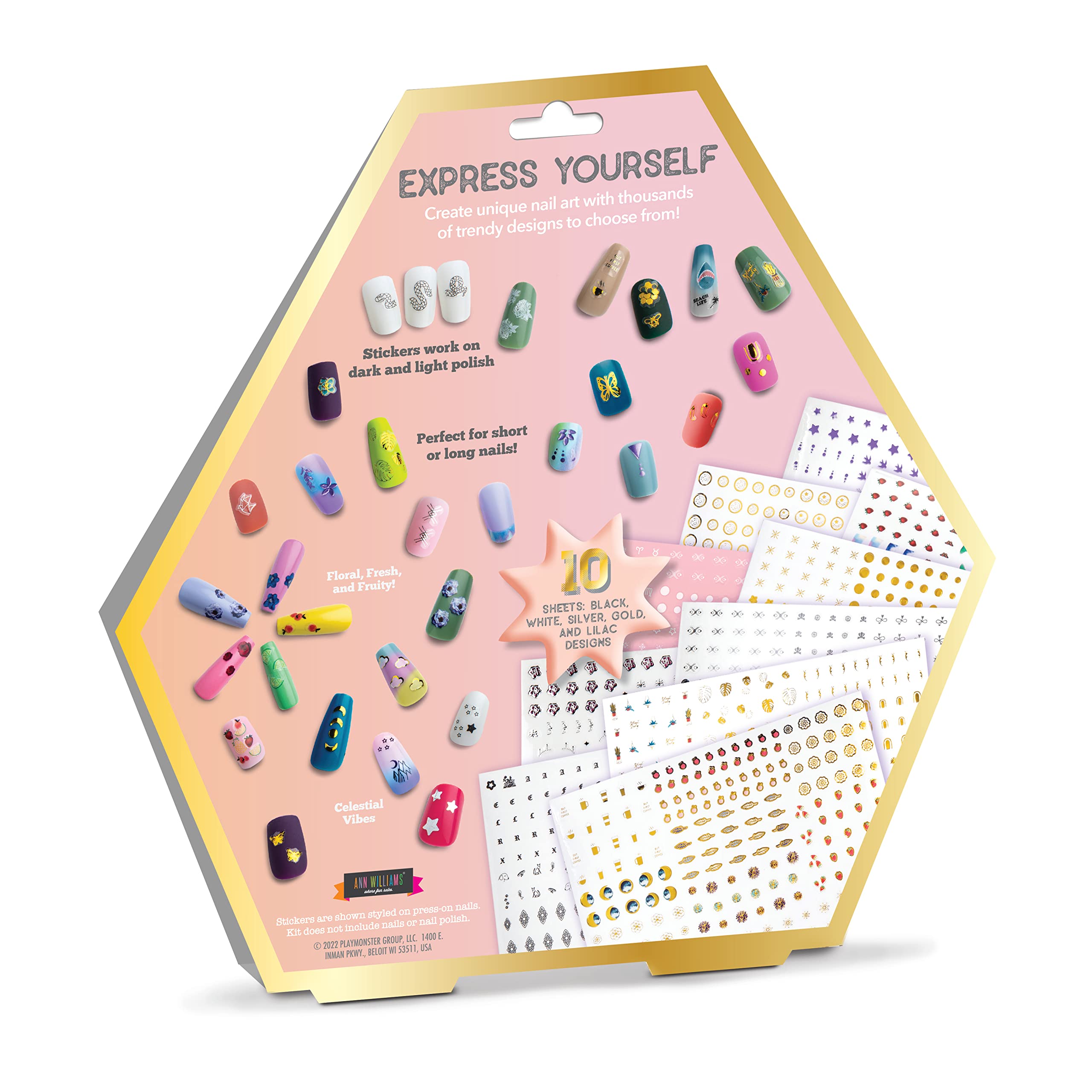 Details: Take your nail art to the next level with Craft Crush Nail Stickers! Featuring thousands of unique designs, there's something to fit every aesthetic! Express (and treat) yourself with incredible nails in a variety of fun themes. Stickers peel on and off for simple placement and removal. Includes 2916 stickers on 10 sheets along with a guide with design ideas.