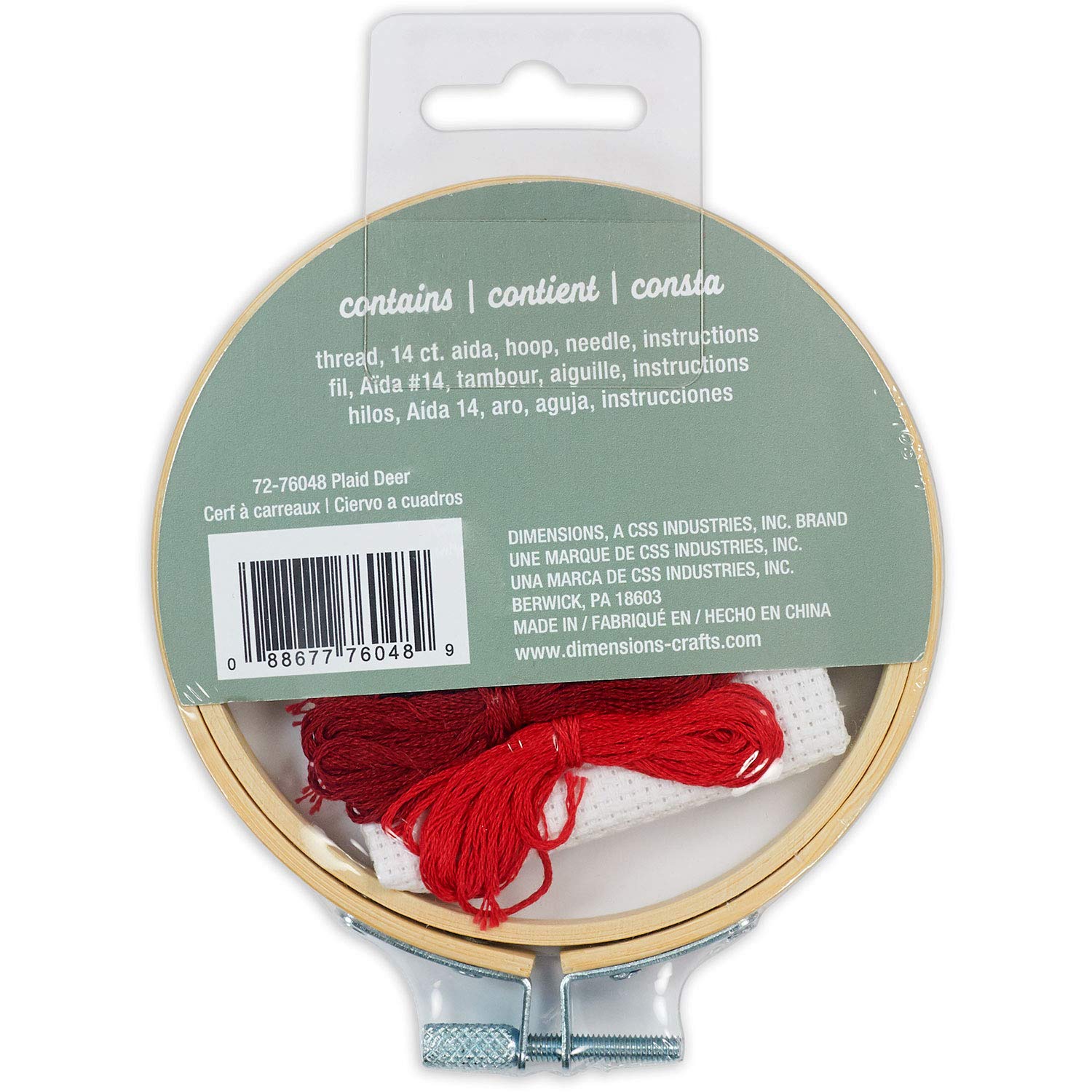 Details: Stitch yourself a homemade Christmas decoration with the Dimensions Plaid Reindeer Counted Cross Stitch Kit! This counted cross stitch kit includes everything you need to create a rustic Christmas decoration, featuring a reindeer silhouette stitched in festive Christmas plaid. When you've finished stitching your holiday craft, gift it to a friend or put it on display! Includes presorted cotton thread, 4'' wood embroidery hoop, 14 count white Aida, needle, and easy instructions. Completed reindeer cross stitch measures 4'' diameter.