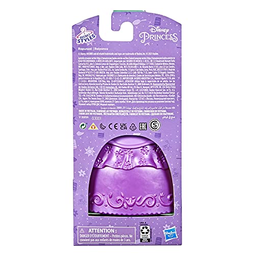 Details: Discover a hidden world of fashions and fun with Disney Princess Secret Styles Fashion Surprise Rapunzel. This 3.3-inch Disney Princess doll comes in a large skirt that opens up to reveal a dressing room inside, complete with mirror. Kids can dress up Rapunzel, the unforgettable heroine of the classic Disney movie Tangled, in 2 different skirts inspired by the movie, 2 bodices, and 2 pairs of shoes they'll find inside. They'll also find 2 purses and 2 necklaces to complete her look. Fashion Surprise Rapunzel makes a great gift for girls 4 and up, and they can also look for more Disney Princess Secret Styles dolls and playsets featuring Disney Princess characters like Belle and Ariel for more fashion discovery fun. (Sold separately. Subject to availability.)