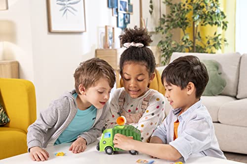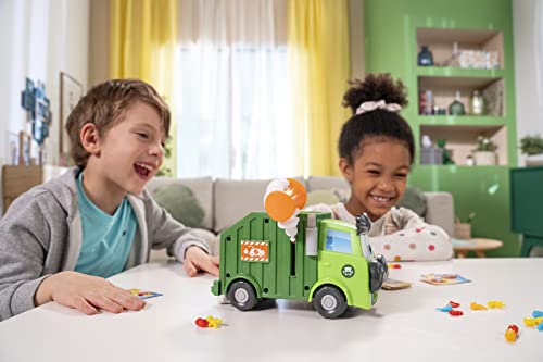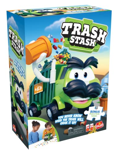 Details: Kids LOVE Garbage Day! With this friendly neighborhood trash truck, kids can relive it over and over again. Take turns drawing cards and placing trash pieces into his can. Got rid of all your pieces? Then gently turn his arm to empty the trashcan into the truck! But watch out – this truck is getting full! Be the first player to get rid of all your trash pieces without making the truck upchuck to win! No reading is required, so even the youngest players have a seat at the table. Plus, no batteries are required for the kid-powered fun you can expect from Goliath. Then when you're done playing, all the pieces can be stored inside the game unit, so they don't get lost! Includes 1 Trash Truck, 24 Pieces of Trash, 16 Clean-Up Cards, 1 Sticker Sheet, and Complete Instructions. Also comes with a fun, colorful 24-piece puzzle! Recommended for 2-4 players, ages 4 and up.