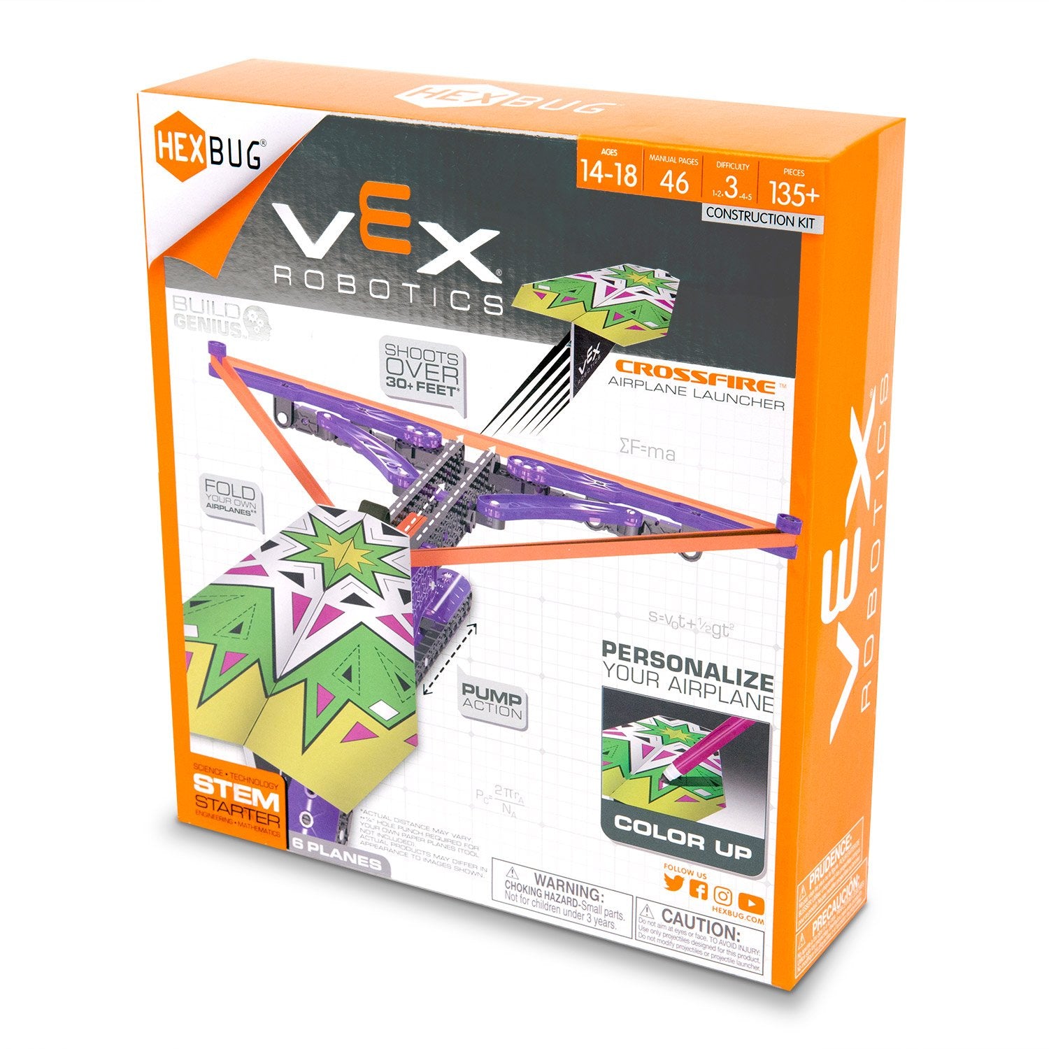 Details: Construct a snap-together build that fires paper airplanes over 30 feet, with the VEX Robotics Crossfire Airplane Launcher by HEXBUG. Send paper planes soaring through the air with the VEX Robotics Crossfire Airplane Launcher by HEXBUG. This STEM kit promotes basic engineering skills through the process of simple snap-together assembly. Pump the handle and watch as your paper plane astonishingly soars over 30+ feet!