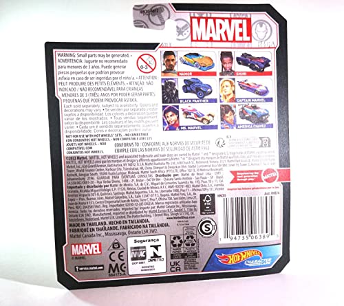 Details: 3+. Each sold separately, subject to availability. Colors and decorations may vary. Empowering the next generation through play. CE listed. Conforms to ASTM F963. UK CA. www.MattelShop.com service.mattel.com. how2recycle.info. Namor. Shuri. Black panther. Captain marvel. MS marvel. America chavez. FSC: Mix - Packaging. Made in Thailand.