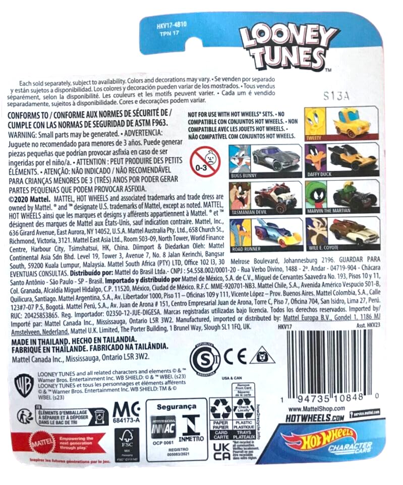 Details: Hot Wheels Looney Tunes Character Cars Complete Set of 7 Diecast Vehicles from HKV23-956D Release