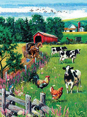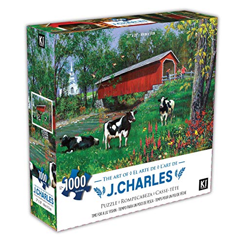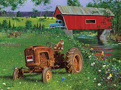 Details: J. Charles "Covered Bridge and Tractor". A colorful and detailed image from renown artist J. Charles. The red covered bridge and antique tractor brims with country charm from a simpler time from the country farm. This interlocking jigsaw puzzle for adults is made of quality, thick recycled paperboard and is 27x20” finished. It is packed in a sealed plastic bag with very low puzzle dust. A full color poster sheet is included for easy reference as you relax, kick back and mentally enjoy a trip to the country while you assemble this colorful puzzle! About the artist: Born in Philadelphia and raised in Bucks County, Pennsylvania, J. Charles spent many years observing the quiet beauty of that historical area. Now working at home in his renovated farmhouse in the Oley Valley, Berks County; the fields of wildflowers, fish filled ponds and game in the back yard provide constant sources for his work. Many trips throughout United States and Canada have enhanced his reference materials for the diverse subject matter found in his current work. As a young painter, J. Charles found himself moving between formal training and various instructors gaining technique from many areas. A reading of The Art Spirit, by Robert Henri as well as texts by J.F. Carlson and B. Kuhn, guided him towards the style with which he paints today. His feeling that all types of art and periods throughout history have something to offer, has influence on his work on a daily basis.
