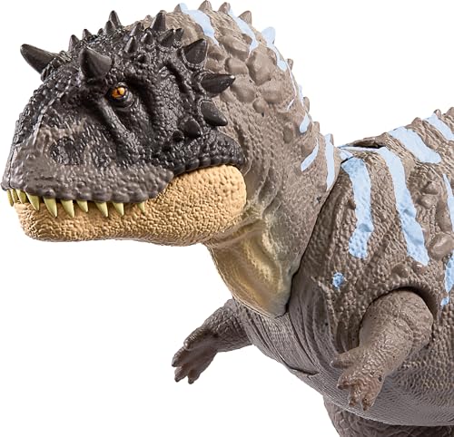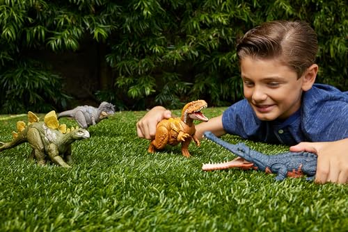 Details: Get roaring and ferocious with Jurassic World dinosaur toys! These Wild Roar figures have an exciting spin wheel-activated continuous ATTACK action -from tail strikes to side strikes to slashing action, depending on the species, accompanied by a fierce ROAR! The medium sized dinosaur species are designed with habitat-specific decos and movable joints. Scan the hidden Tracking Code in the free Jurassic World Play App with a compatible smart device (Android or iOS, not included) to unlock AR experiences and fiercely fun games! For dinosaur fans ages 4 years and up. Colors and decorations may vary.