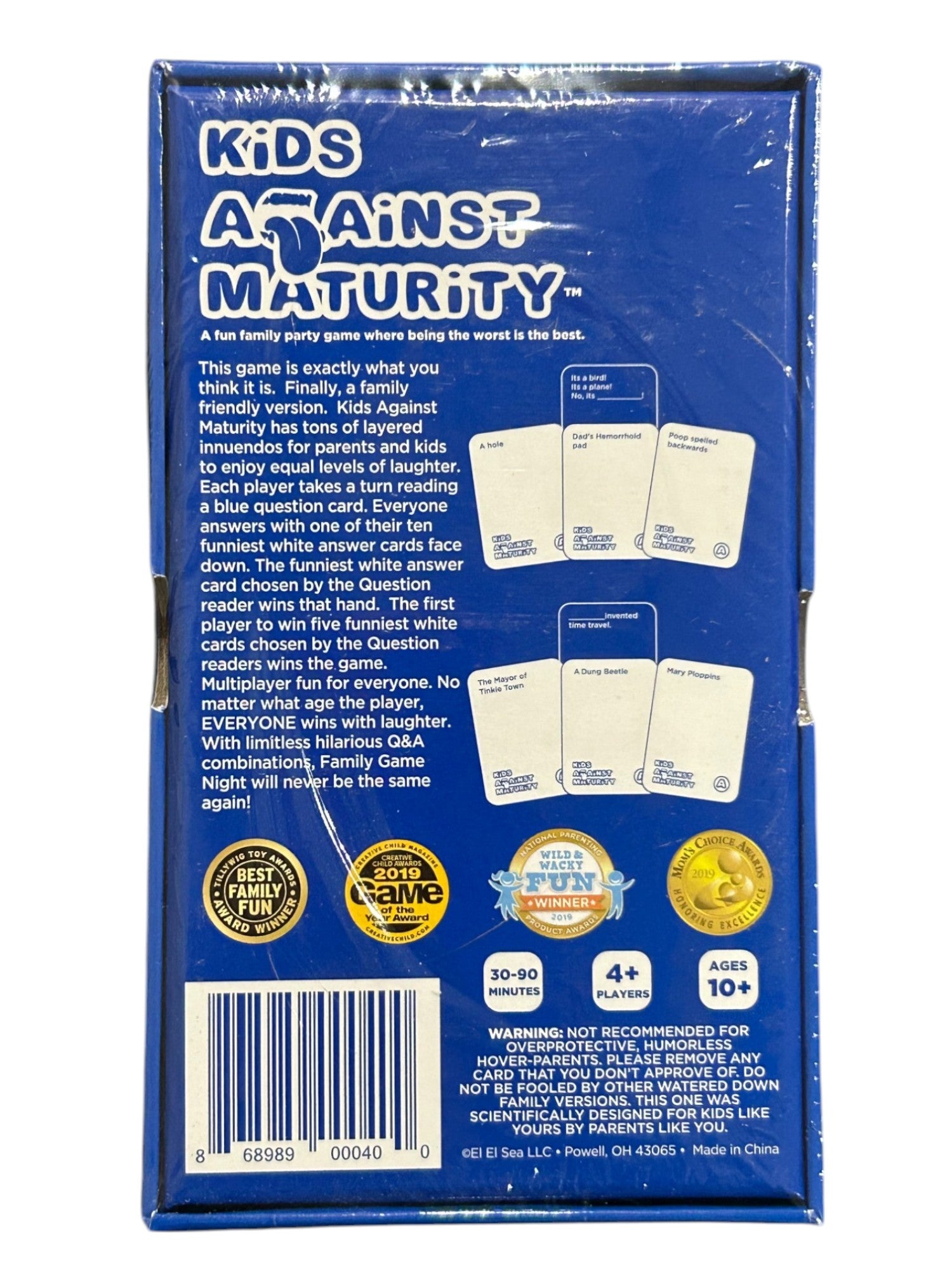 BEST FAMILY FUN GAME – Dear Evolved Parents, Kids Against Maturity is the perfect parental tool to approach playtime and family time. With age-appropriate toilet humor and funny innuendos for the adults, it can be enjoyed by all ages.