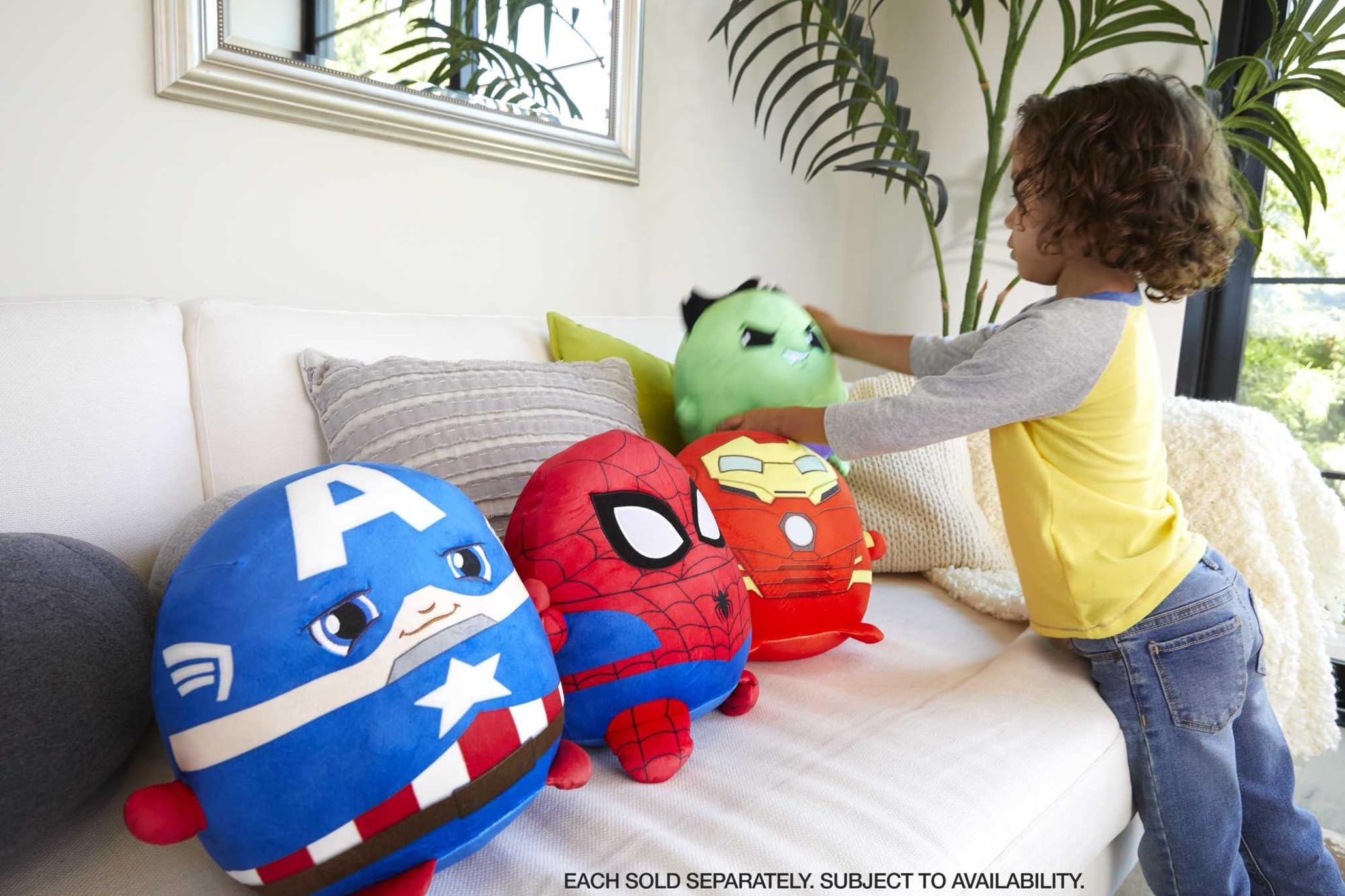 Details: Cuutopia rounded plush figures inspired by Marvel characters allow fans to get up close and huggable with their favorite Super Heroes from the comic book universe! Designed with a rounded form and tactile fabrics, the soft toys are extra squishy and fun to play with. Each stands 10 inches tall in their Super Hero costume with iconic elements for easy recognizability. Play out action moments or cuddle up for snuggly ones. Fans can pick a favorite or collect them all -the Cuutopia Marvel plush characters make a great gift for kids and collectors 3 years old and up. Each sold separately, subject to availability. Colors and decorations may vary.