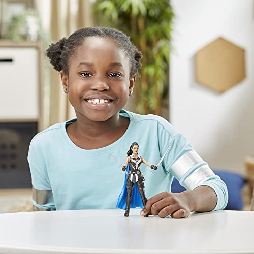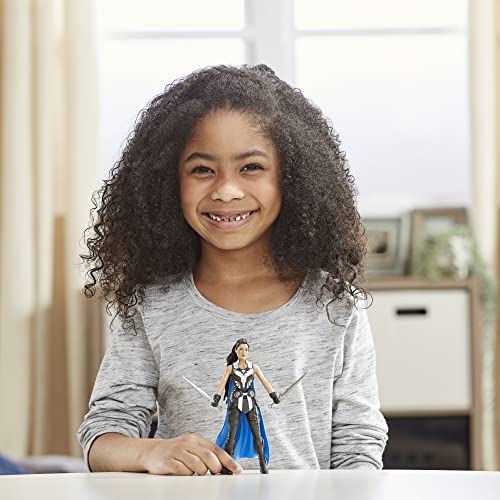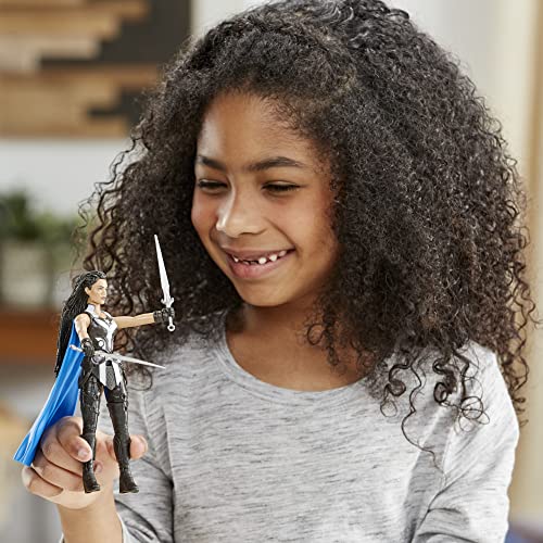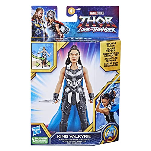 Details: King Valkyrie is recruited to fight a new threat to the cosmos when Thor is convinced to return to the battlefield! Imagine slashing into otherworldly action and adventure with this 6-inch-scale King Valkyrie deluxe action figure from Marvel! Featuring design and detail inspired by Marvel Studios' Thor: Love and Thunder, part of the Marvel Cinematic Universe, kids ages 4 and up can pretend to join the battle to protect New Asgard. Squeeze the King Valkyrie deluxe action figure's legs to activate a fun sword-slashing action feature! Boys and girls will love re-creating favorite moments from the Marvel entertainment, as well as imagining their own superpowered adventures. This 6-inch-scale Marvel Studios' Thor: Love and Thunder deluxe action figure is detailed to look like the King Valkyrie character from the Marvel Cinematic Universe, featuring entertainment-inspired design and detail and sword-slashing action. © 2022 MARVEL. Hasbro and all related terms are trademarks of Hasbro.