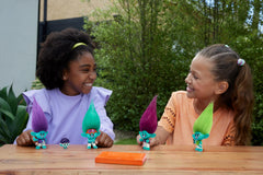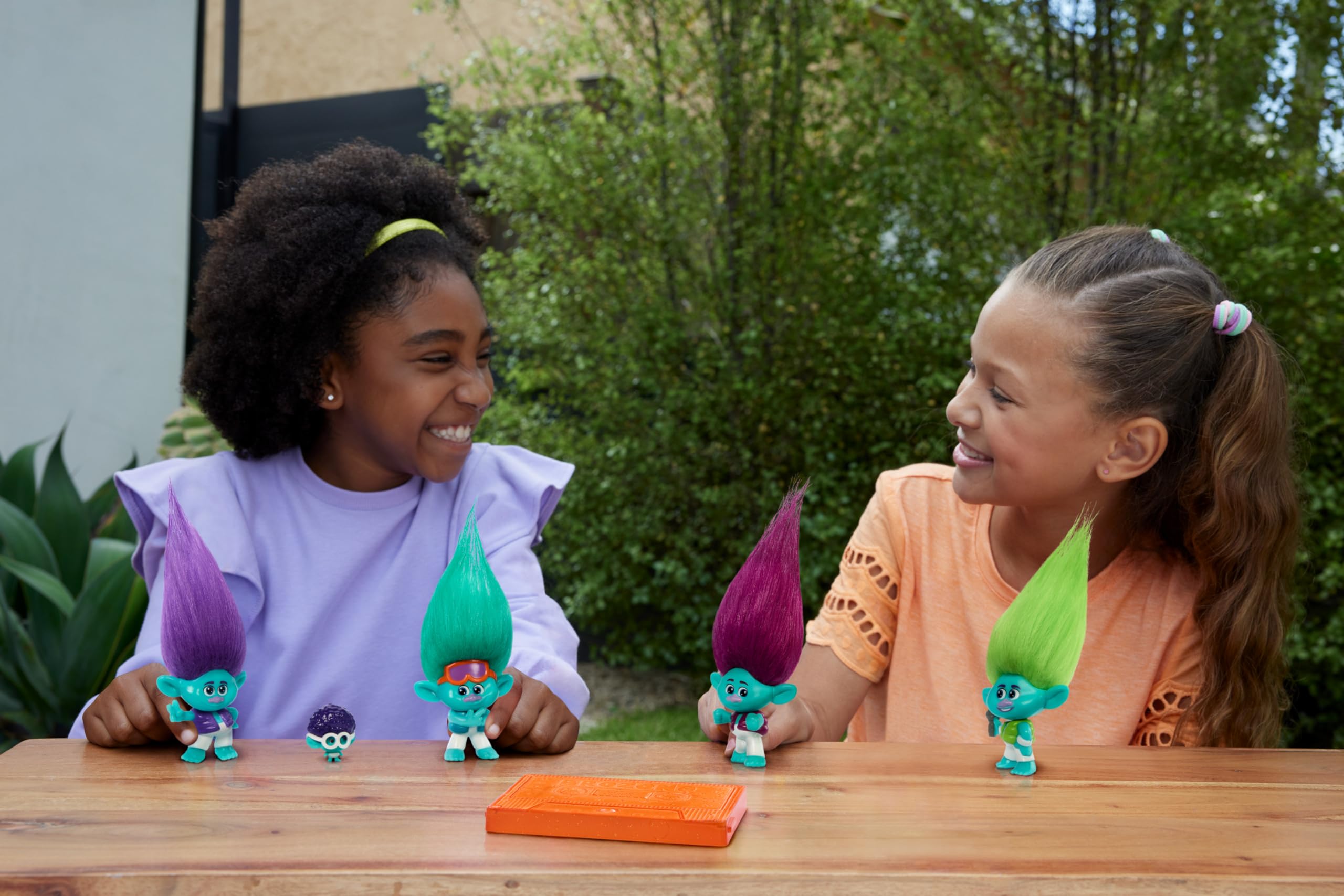 Details: Inspired by DreamWorks Trolls, the BroZone On Tour set of five small dolls brings the band back together! Featuring musician members and brothers John Dory, Bruce, Floyd, Clay, and Baby Branch, each doll has their vibrant hair and a signature look kids will recognize from the film. The cassette tape-inspired doll stand is perfect for recreating bro-dacious movie moments -- fans can place each doll on the cassette and stage a BroZone performance for play or display! The instant collection makes a great gift for ages 3 years and older. Dolls cannot stand alone. Colors and decorations may vary.
