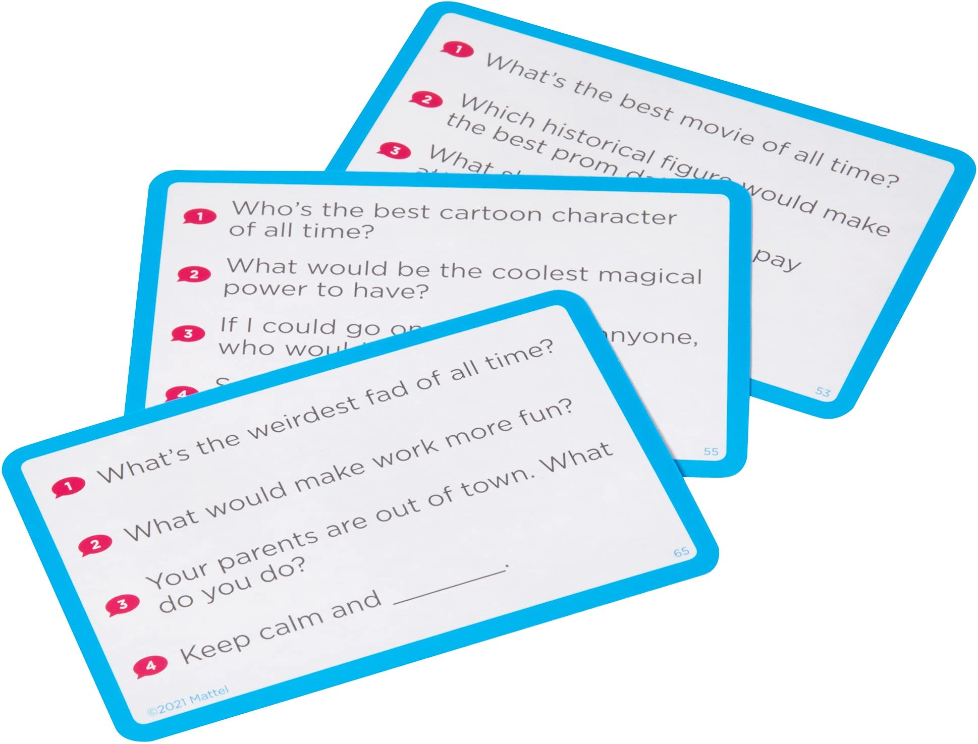 Details: The Say Anything board game is about being as witty, weird, or wild as you want to be! Get everyone talking with this award-winning party game which offers an opportunity to be creative and have a hilariously good time. Learn how to play quickly and get started right away. Relax, there's no pressure to actually know anything. "Say anything" you want! Gather 4 to 8 players. A question is read out loud, and players write down their answers. The judge secretly picks a favorite, then everyone else guesses which answer was picked. Points are earned for being chosen by players and the judge. The player with the most points at the end of the game wins! Say Anything game is imaginative, hysterical fun and perfect for an adult party or family game night with teens!