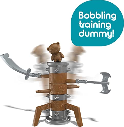 Details: Minions: The Rise of Gru is the origin story of the world's most despicable super villain! You can recreate tons of movie mayhem with this complete story set featuring Bob and Stuart in Kung Fu outfits. Practice sparring on their spinning training post. It wobbles and turns as they strike the variety of martial arts tools. Teddybear Tim is stuck on top of the sparring post and spins as they train with a mace, axe, blade and a spiked club. You can also detach the accessories and have the Minions hold them with their handgrips and then engage in hand to hand combat. Each figure can carry their training gear off to the next mission in the peg holes on their backs and has multiple points of articulation for authentic play. Their detachable accessories can be swapped and shared with other 4-inch characters and the figures are all compatible with our Action Minions, Loud 'N Rowdy Minions and our Wild Rider RC vehicle to keep the movie fun coming. Each sold separately, subject to availability. Colors, decorations and dimensions may vary.