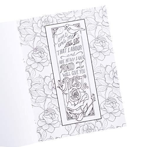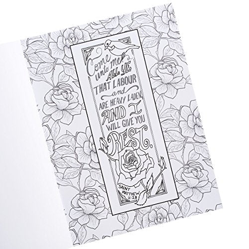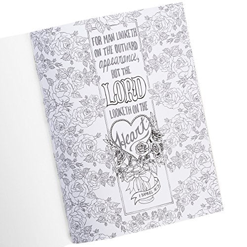 Details: Engage with the King James Bible in a new way through coloring the artistically expressed Scripture in this beautifully crafted My Favorite KJV Verses to Color Coloring Book. The pages incorporate a variety of delightful patterns, motifs, and ink drawings that serve as a background to the free-hand drawn Scripture from the KJV Bible. Relax and be inspired while you enjoy this meditative pastime. The cover of My Favorite KJV Verses to Color Coloring Book shows a work in progress with an incomplete image, just begging to be shaded. Lavish applications of spot-varnish and bronze foil accents add elegance to the cover. The book is bound in heavy-duty stock paper and features 128 perforated pages with 62 elegant and contemporary designs to color. At least 7 of these pages include smaller cards and bookmarks and gift tags you can color, cut out, and give away. Be inspired by the beautiful language of the King James Version paired with exquisite designs and color your way to calmness and serenity. While you are at it, share some pages with friends and family members and introduce them to the art of adult coloring. Inspirational Coloring Book for Adults Images are based on KJV Scripture Softcover Printed on High-Quality Heavy Stock Paper 128 Perforated Pages Pages Printed on One Side 62 Images to Color Presentation Page for Gift-giving Size: 11" x 8.5" x 0.4" (279 x 216 x 10 mm)