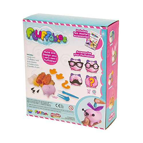 Details: Huggable, Lovable, Totally Fluff able Create, style, and play-Flu fables uses a simple, repetitive play process to create cute fluff able friends Use the tool to push fluff into a form, repeating this process until the character is completely covered. Each kit comes with a mystery accessory for your Flu fables to wear-which accessory will you find? Collect them all .