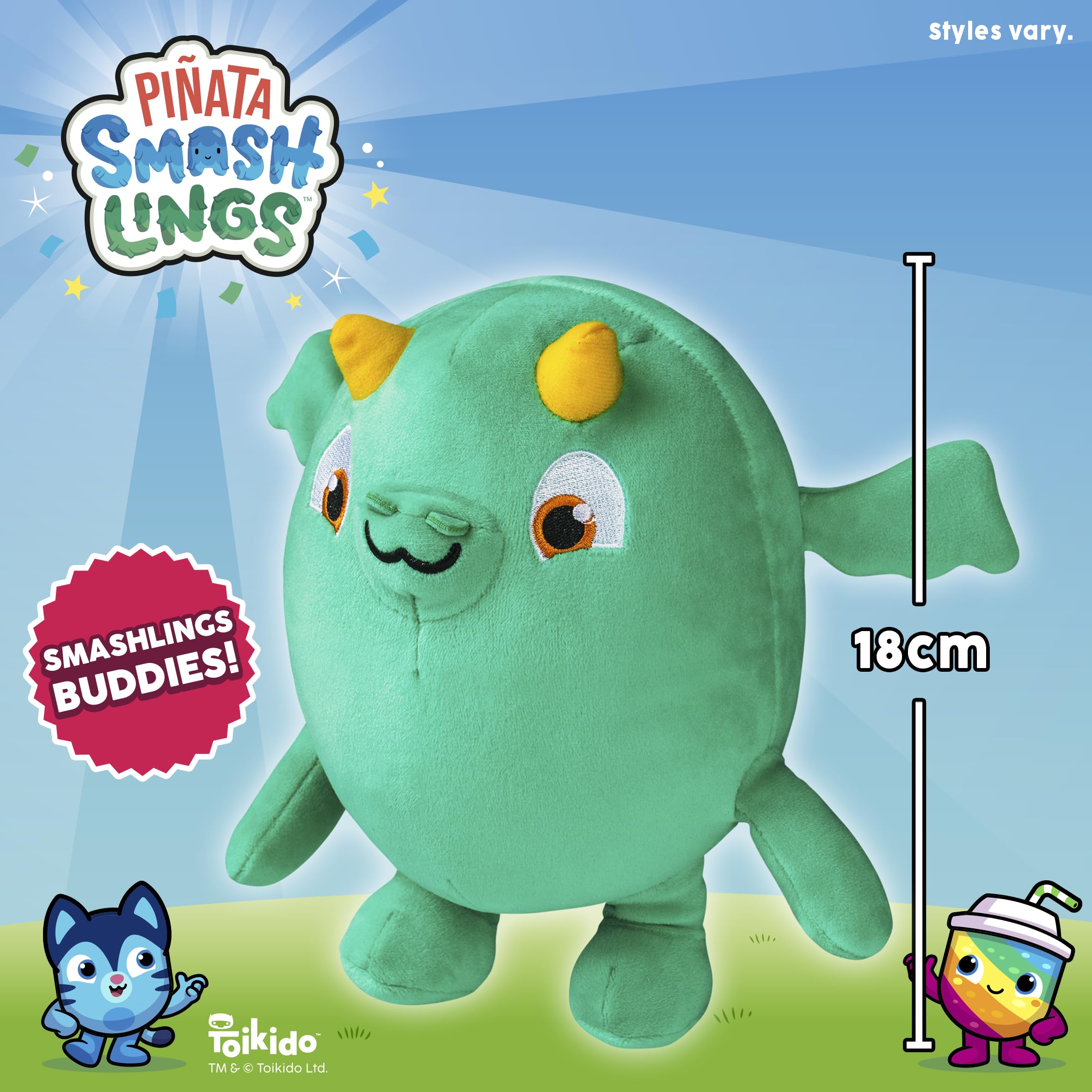 Details: Introducing the world of Piñata Smashlings! Discover the Piñataverse, home to wise Piñatas, scheming Meañatas, bitter Bashlings and LOTS of adorable, cheeky Smashlings. Now you can bring the magical, fun filled world of the Piñata Smashlings Roblox game to life at home, with the adorable Piñata Smashlings Toy Range! The Piñata Smashlings Blush Buddies are super cute and cuddly collectable soft toys, based on the Smashlings characters from the Roblox Game. The Green Dragon Plush Buddie is 20cm tall. Re-enact your favourite gameplays and experience new adventures with the Piñata Smashlings Plush Buddies. Each Plush Buddy comes with a redeemable digital code for the Piñata Smashlings Roblox Game! Suitable for all ages.