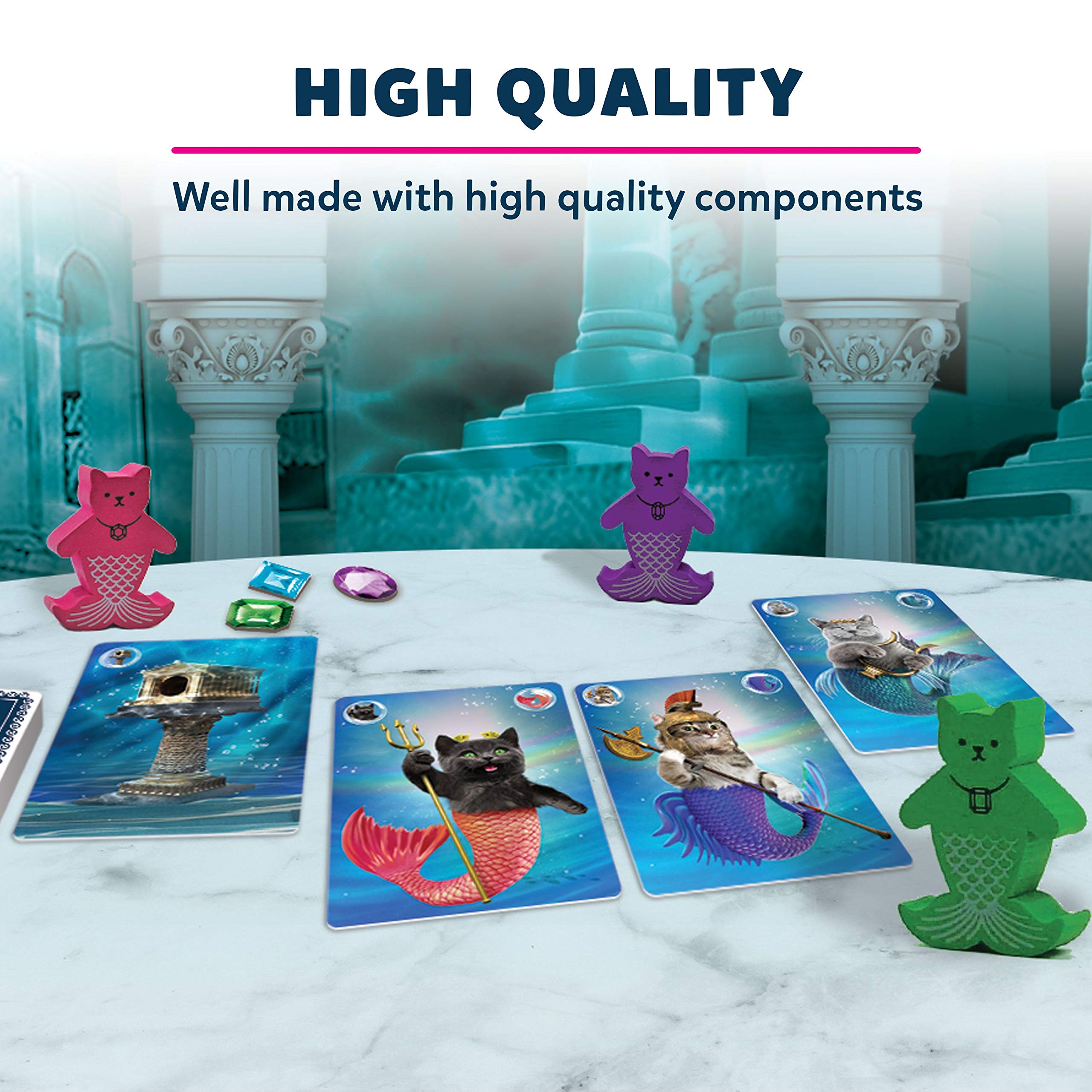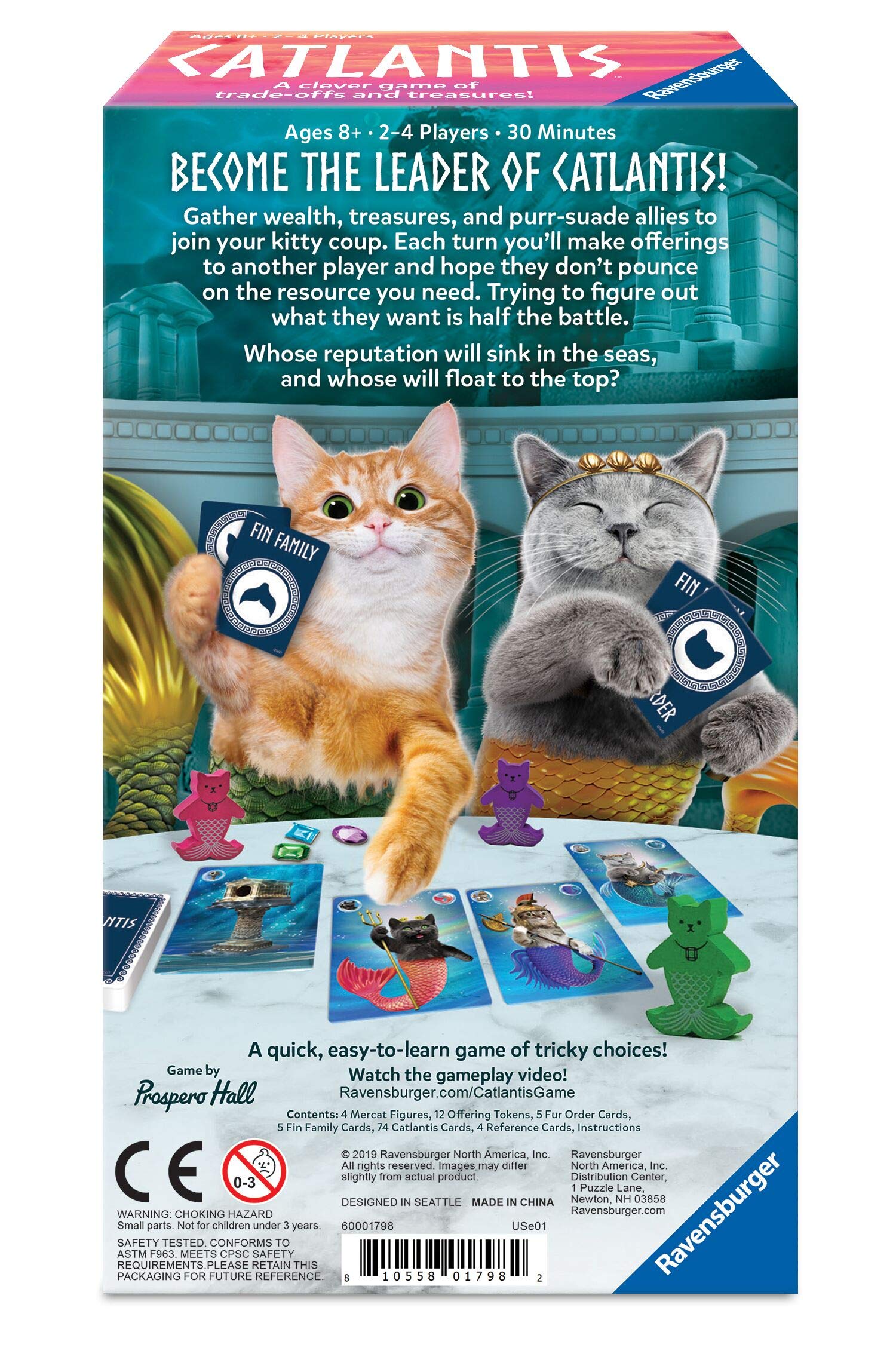 Details: Become the leader of Atlantis! Gather wealth, treasures, and purr-suade allies to join your kitty coup. Each turn you'll make offerings to another player and hope they don't pounce on the resource you need. Trying to figure out what they want is half the battle. Whose reputation will sink in the seas, and whose will float to the top?