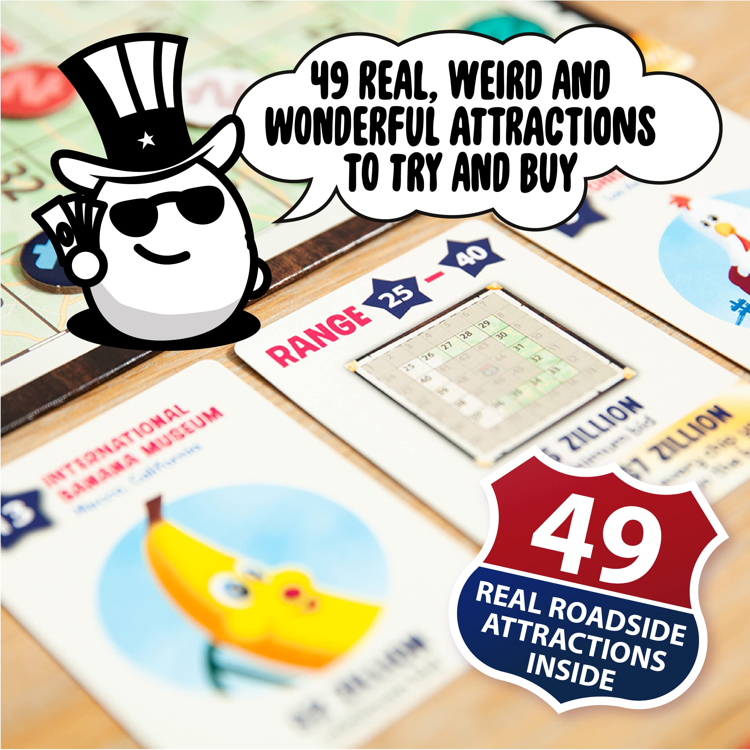 Details: Zillionaires Road Trip USA is a board game mash-up of Sequence and Monopoly — so get ready to line up some deals! Your mission is to buy four attractions in a row. Just be careful you don’t get sucked into a bidding war! Snap up quirky spots like the ‘Museum of Bad Art’ or the ‘Igloo Hotel’, in a 30-minute ‘all-auction’ board game for families. Sold! Only the best new board games contain an actual hammer. When you bang the gavel, the highest bidder wins the property. Nice. A family game that’s easy to learn, so it’s the ideal board game for 8 year olds or older. Plus, it can be played as a 2 player board game too!